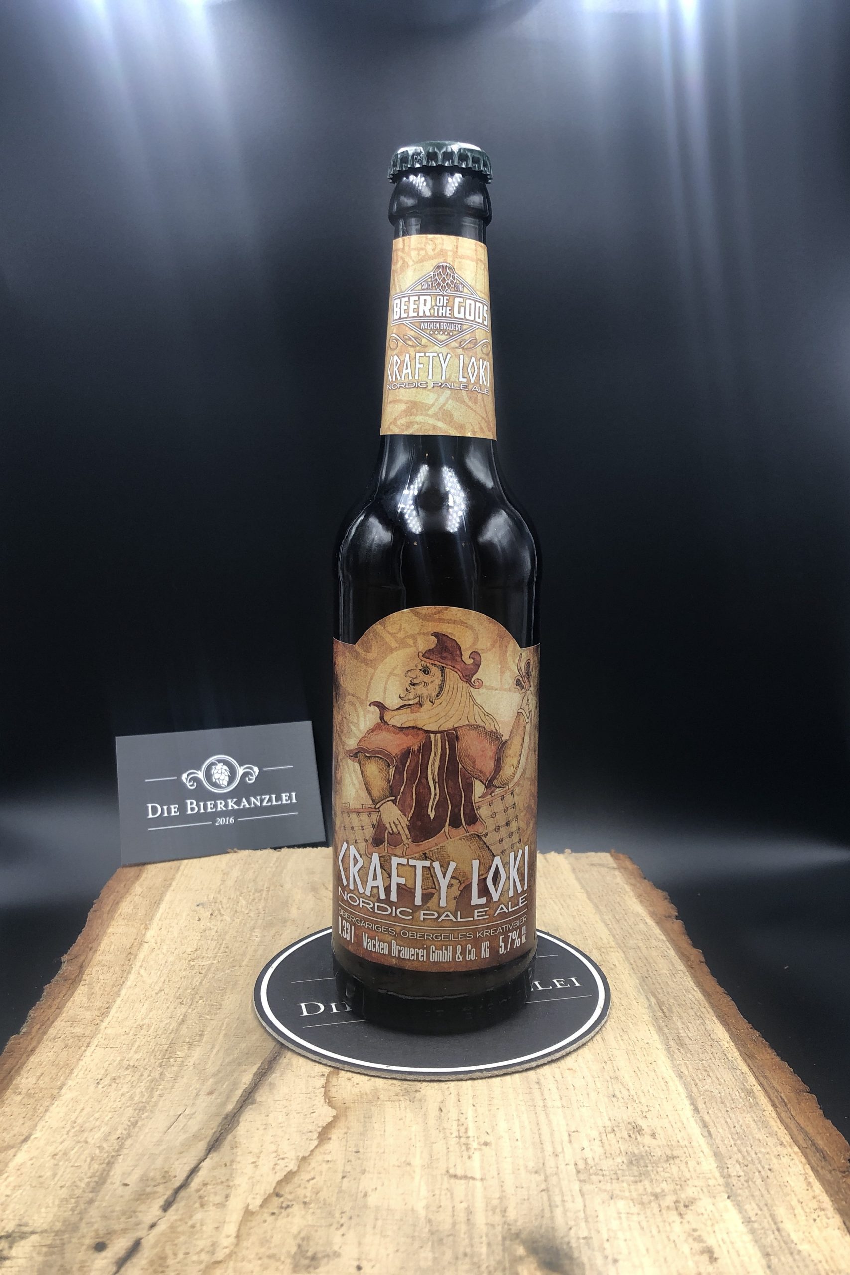 Wacken Crafty Loki Pale Ale. So heißt der hinterlistige Gott, der dem nordischen Götterhimmel ordentlich einheizt. Er ist der vielschichtigste Asengott. Ein einfallsreicher Trickser, zuweilen liebenswürdig, hilft er den Göttern, aber manchmal spielt er ihnen böse Streiche. Das Bier erinnert an Loki, weil es ebenso vielschichtig ist: Der runde Malzkörper bietet Süffigkeit. Die verwendeten Hopfensorten liefern nicht nur eine frische Grundbittere, sondern sorgen auch für ein gewaltiges fruchtig-blumiges Geschmackserlebnis. Um die Aromenvielfalt nicht zu beeinträchtigen, ist das Bier naturbelassen, unfiltriert und nicht pasteurisiert. Und weil das Bier so gut schmeckt, besteht die Gefahr, dass man zu viel davon trinkt. Dann zeigt sich die hinterlistige Seite des intensiven Crafty Loki.